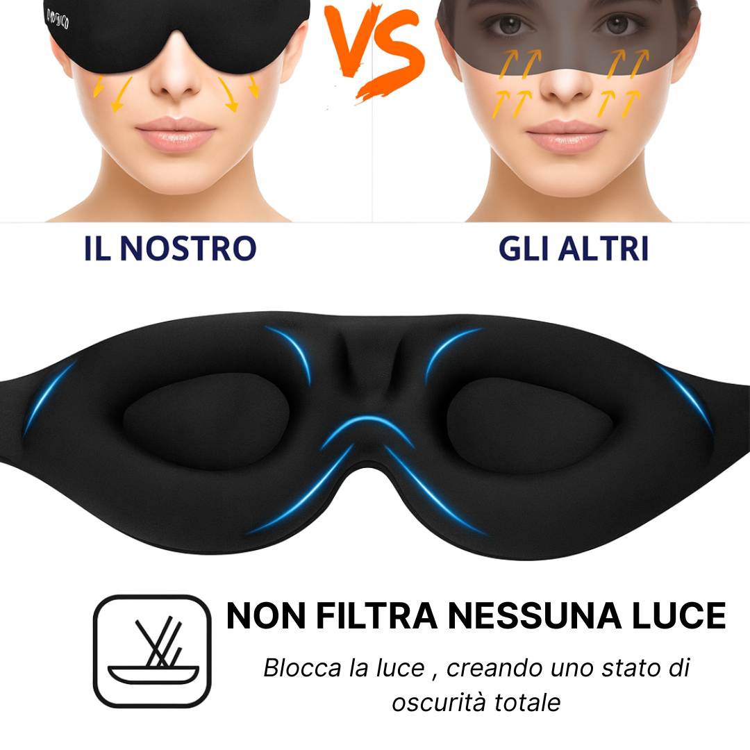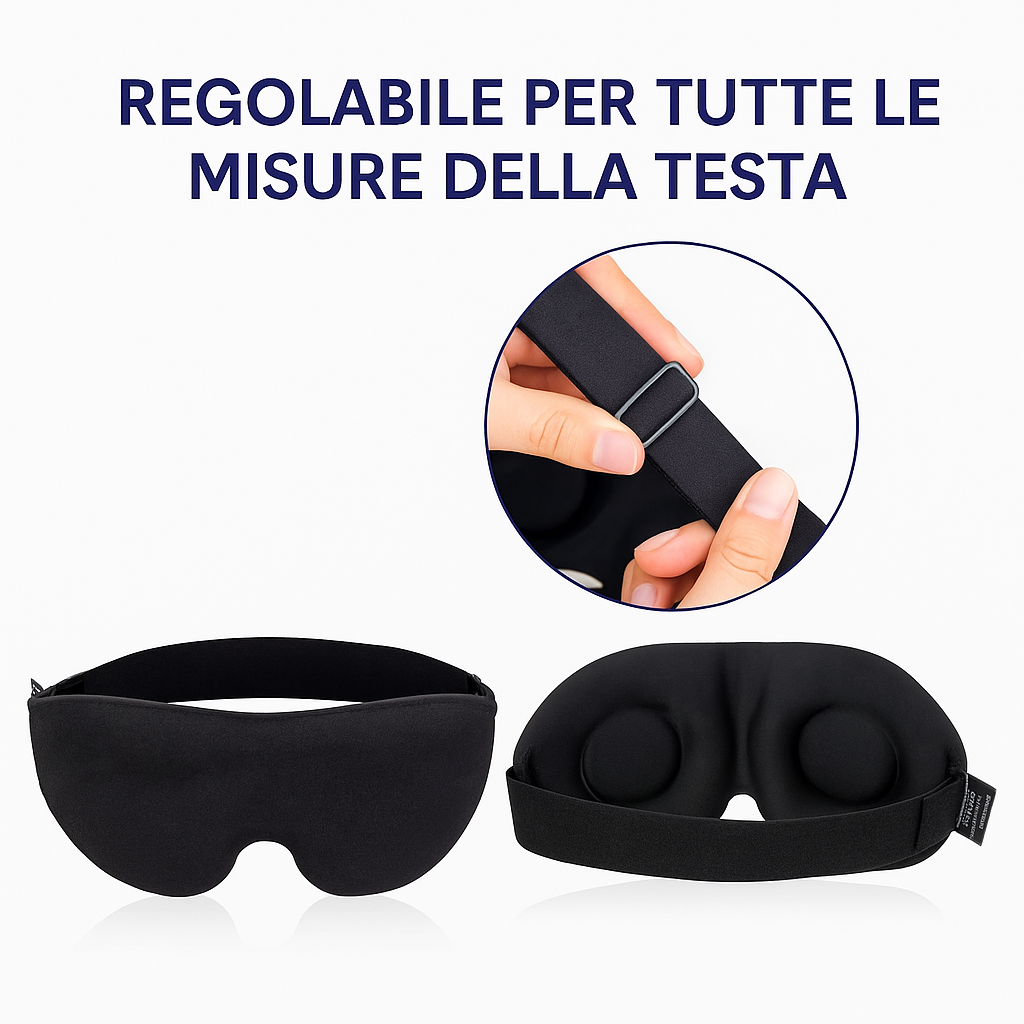 Realizzata in memory foam di nuova generazione, blocca il 100% della luce per offrirti un riposo totale — ovunque tu sia.